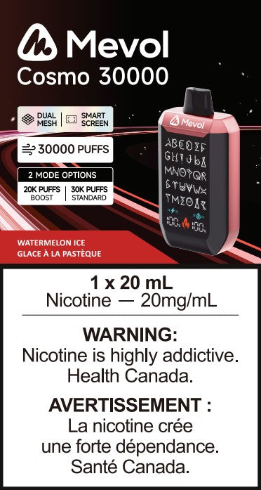 Step into the next generation of vaping with the Mevol Cosmo 30000. Designed with advanced features and unmatched capacity, this disposable device is built for those who want performance, convenience, and longevity in one sleek package. This device gives you strong flavour and hit.
